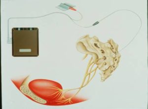 • Surgical: Sacral Nerve Stimulation: This procedure, involving insertion of a small wire in the lower back which is guided to sit near the sacral nerves that innervate the anal sphincter. The wire is then sent stimulation impulses to the nerve which makes the sphincter and pelvic muscles contract. The source of the stimulation is a small battery which is eventually inserted under the skin and so the whole system is under the skin. This system has proved very useful in the treatment of faecal incontinence. The battery is simply replaced if it wears out by another small operation.