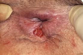 This is a linear anal ulcer present at the anal margin usually midline at the back, sometimes at the front. The ulcer may develop after rapid evacuation with a hard stool. Sometimes a lump is felt which is swollen skin at the end of the ulcer.